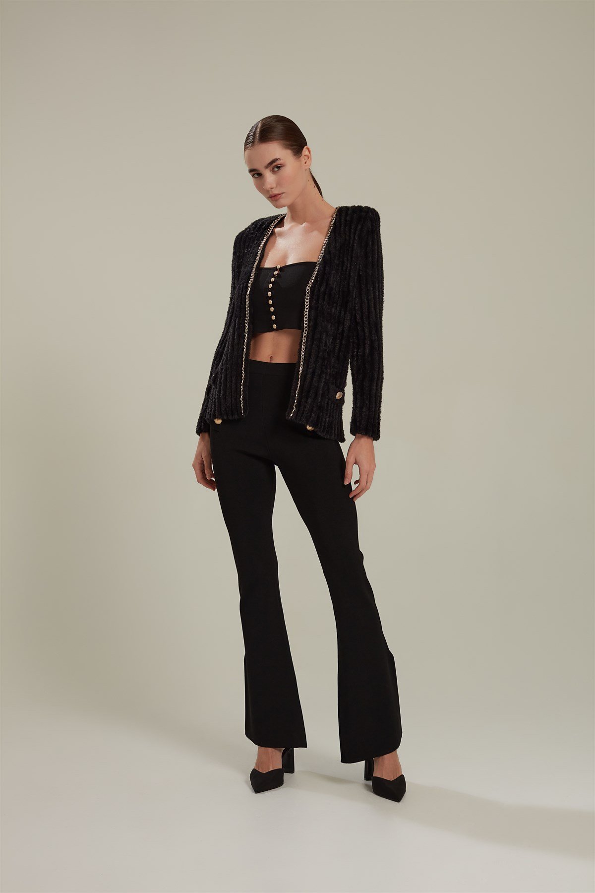 Kıyafetiniz bir statement olsun! 🔥 Laguna Jacket, klasik ceket kesiminin gücünü, manşetlerindeki lüks tüy detaylarıyla buluşturuyor. Tek düğmeli, dökümlü ve fit kesimiyle hem resmi hem de parti şıklığına anında uyum sağlar. Gardırobunuzun en cesur parçası!