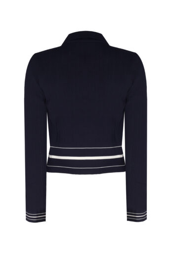 Gardırobunuzun yeni MVP’si! 🏆 Malibu Sweater, lacivertin asaletiyle preppy (okullu) ve lüks havayı birleştiriyor. Beyaz çizgili detaylar, çarpıcı altın düğmeler ve ceket yaka kesimi… Giy-çık şıklığın tanımı! İster jean ile ister ofis pantolonuyla, bu hırka her kombini anında yükseltir.