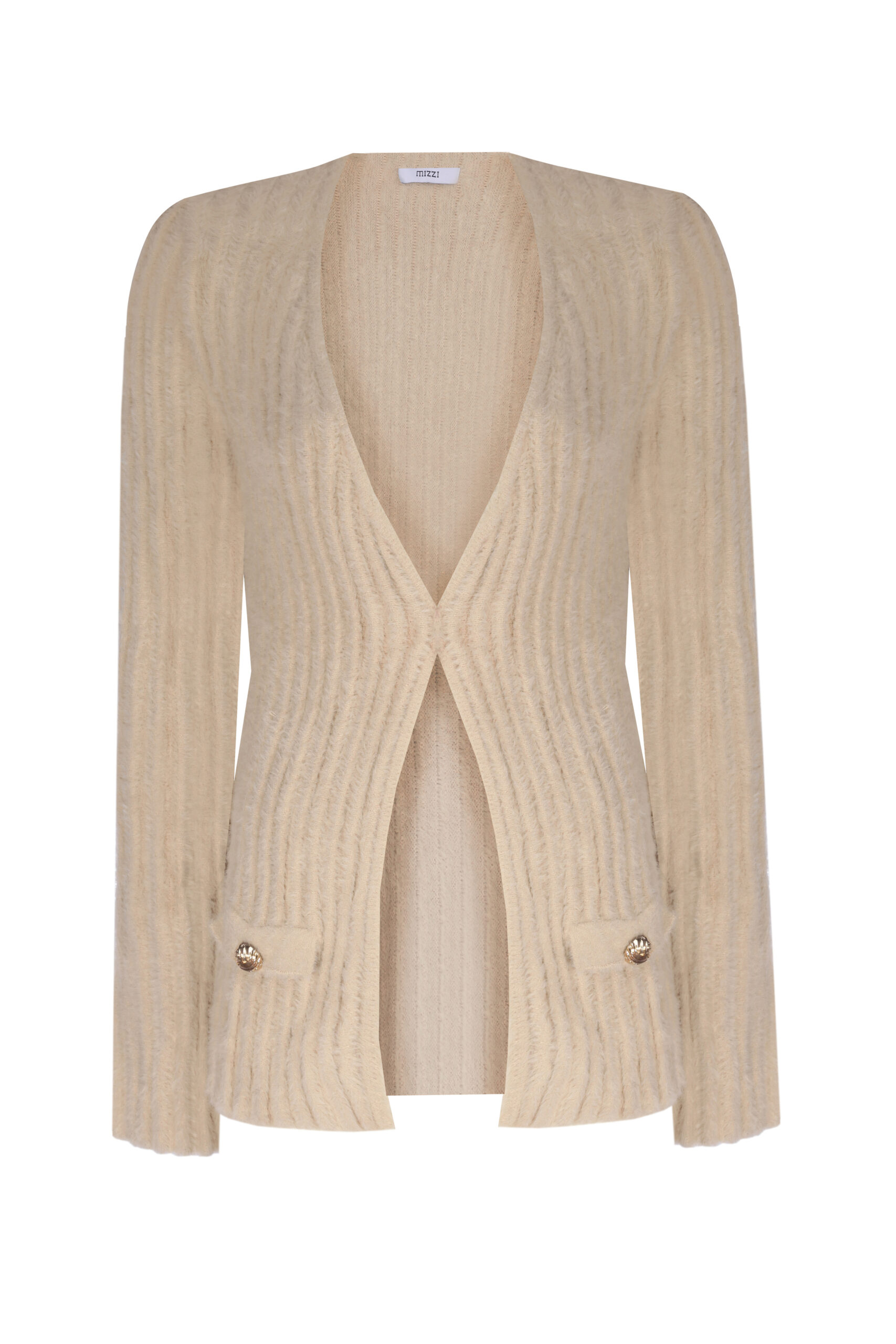 - Mükemmel Döküm: Düğmesiz, dökümlü V yaka kesimi, içindeki bluz veya üst giyim parçasını güzelce çerçevelerken, hırkanın rahat ve akıcı bir silüete sahip olmasını sağlar.