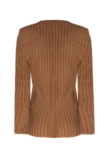 Bambaşka bir şıklık! ✨ Venice Cardigan, vücuda oturan fitilli dokusunu, önündeki yırtmaç detayı ve çarpıcı trompet kollar ile birleştiriyor. Üst kısımda yer alan minimal altın düğmeler ise trikoya lüks bir hava katıyor. Klasik hırkaları unutturacak, dinamik ve sofistike bir parça!